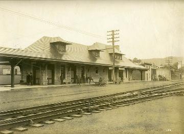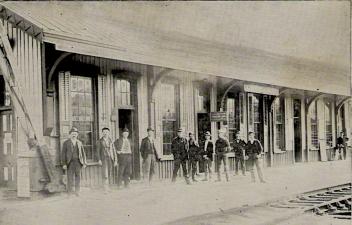 | This striking image shows, what was at the time, the new Philadelphia and Reading Railroad station at Schuylkill Haven. The structure looks very much as it does today as our borough hall. |