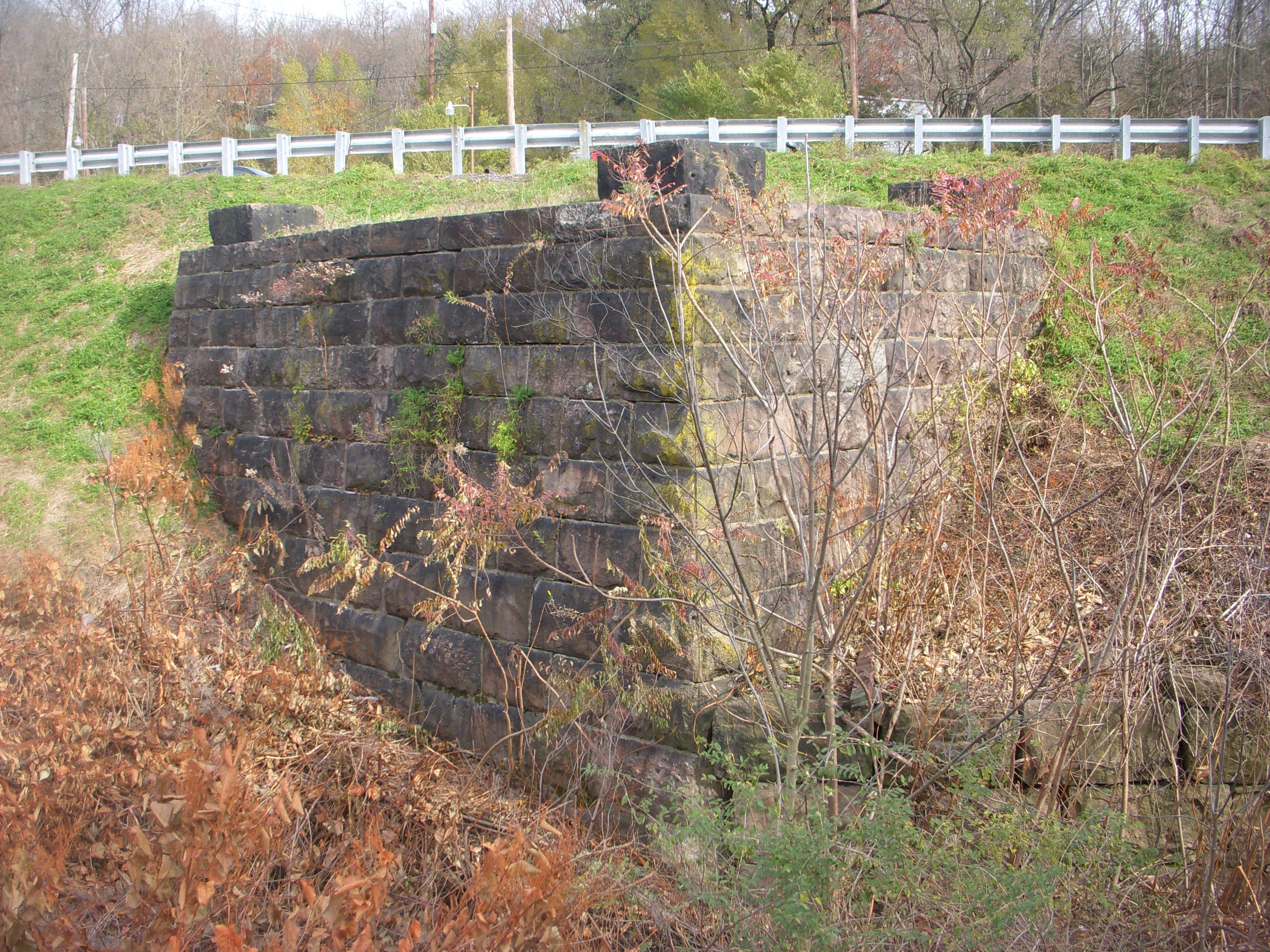 | The two images above show remnants of the Lehigh Valley Railroad in Schuylkill Haven. On the left is the remains of the bridge abutment located behind Reiley and Sterners on Centre Avenue. On the right is the remains of the bridge abutment on the southeast corner of the parking lot at the Cressona Mall. |